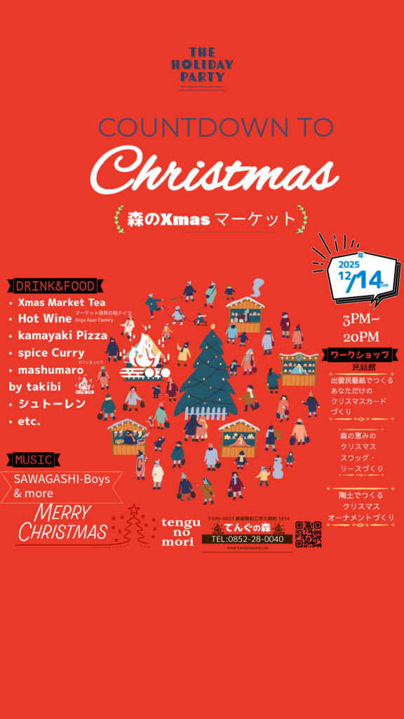 WORK SHOP :出雲民藝紙でつくるクリスマスカード、森の恵みのクリスマスリース・スワッグづくり、 陶土でつくるクリスマスオーナメントづくり